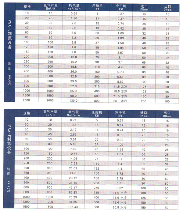 制氮機(jī)-變壓吸附制氮設(shè)備技術(shù)參數(shù)